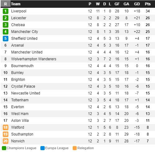 Daftar top skor sementara premier league.